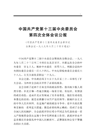Page 1 - 中国共产党第十三届中央委员会第四次全体会议公报