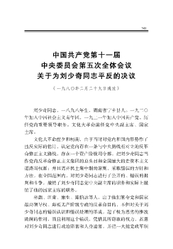 中国共产党第十一届中央委员会第五次全体会议关于为刘少奇同志平反的决议